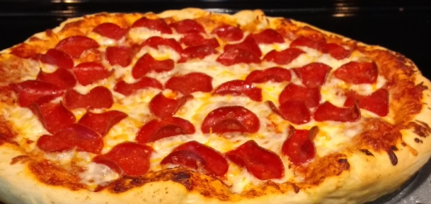 Our pepperoni and cheese pizza.